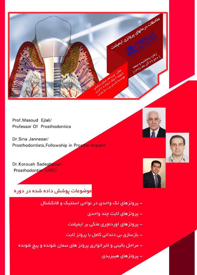 دوره ملاحظات درمانهای پروتزی ایمپلنت - ۲۸ و ۲۹ آذرماه ۹۸