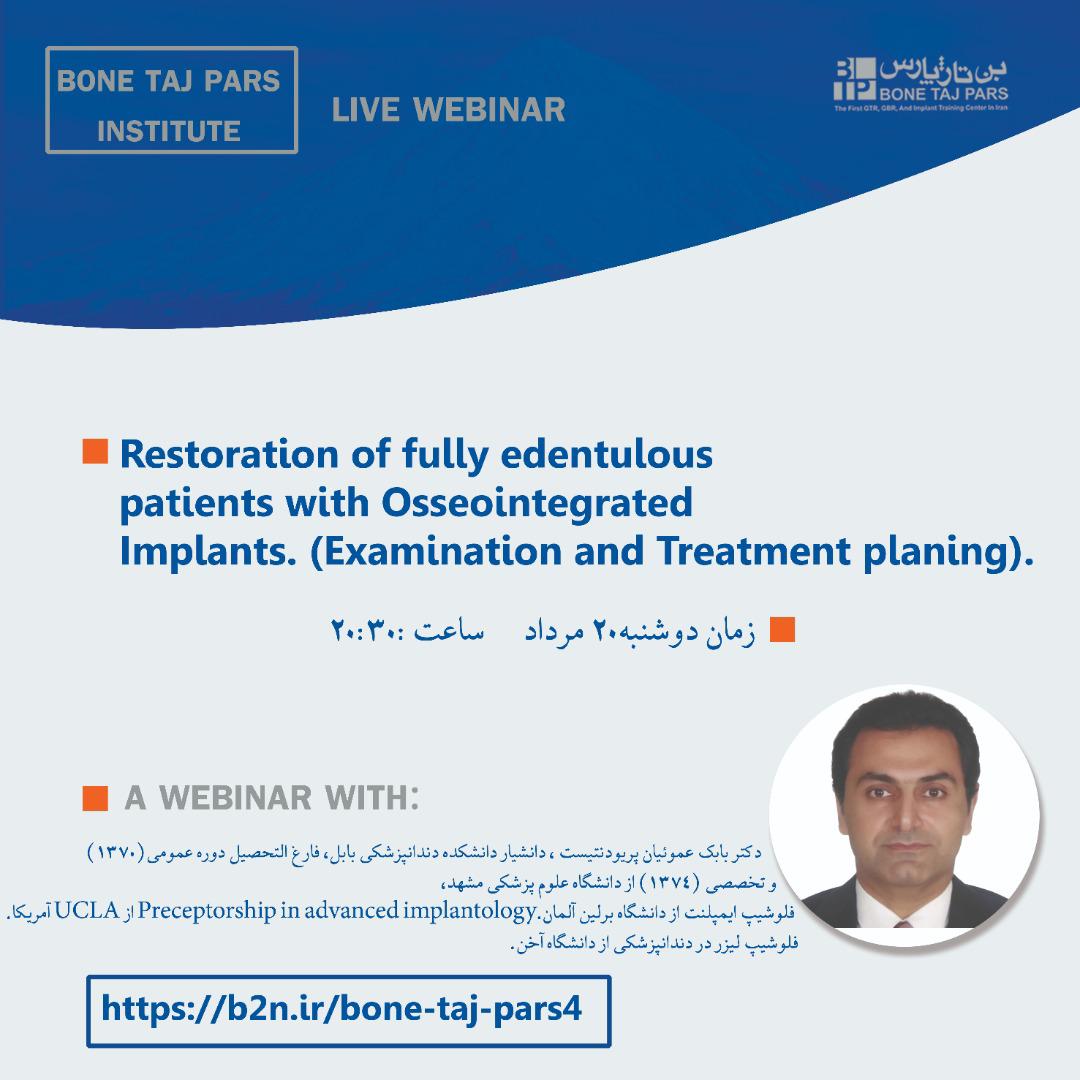 01 مرداد,1399 اخبار وبینار Restoration Of fully edentulous patients Osseointegrated Implants - تاریخ 20 مردادماه 99 قبلی بعدی